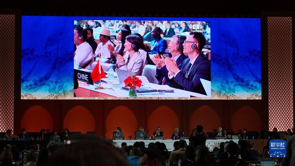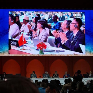 這是11月29日在摩洛哥拉巴特拍攝的聯(lián)合國教科文組織保護非物質(zhì)文化遺產(chǎn)政府間委員會(huì )第17屆常會(huì )會(huì )議現場(chǎng)。