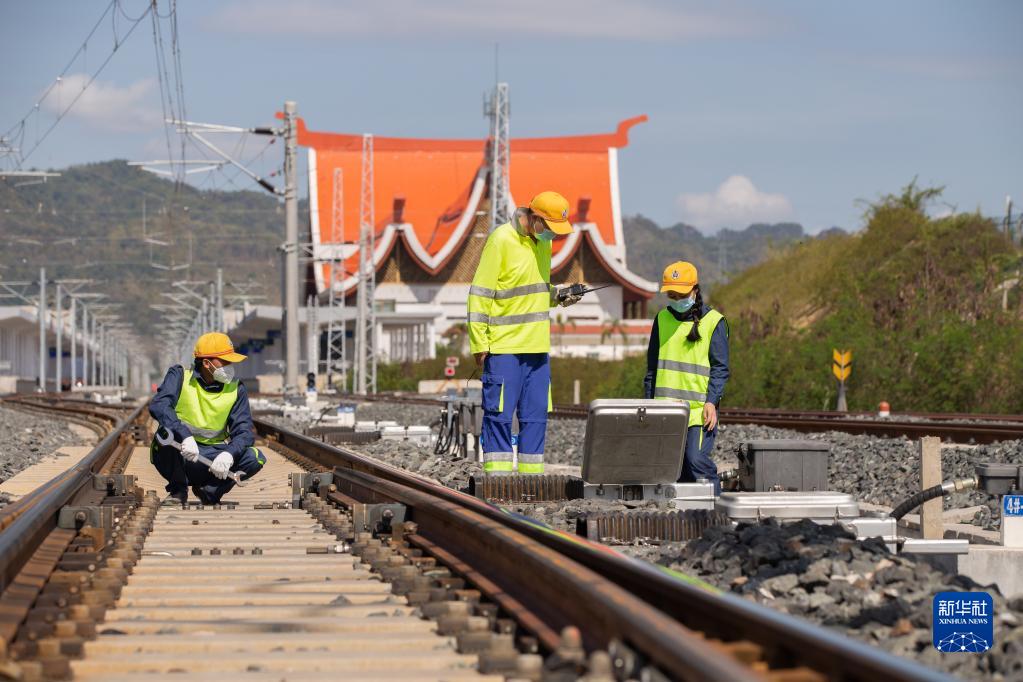 12月1日,在老撾瑯勃拉邦,中老鐵路雙方員工共同維護線(xiàn)路。