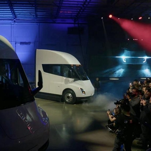 這張視頻截圖顯示的是12月1日,美國特斯拉公司在位于內華達州的超級工廠(chǎng)舉行首批Semi電動(dòng)卡車(chē)交付儀式。