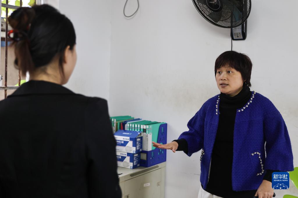 12月1日,陳德琳(右)給新來(lái)的員工介紹公司情況。