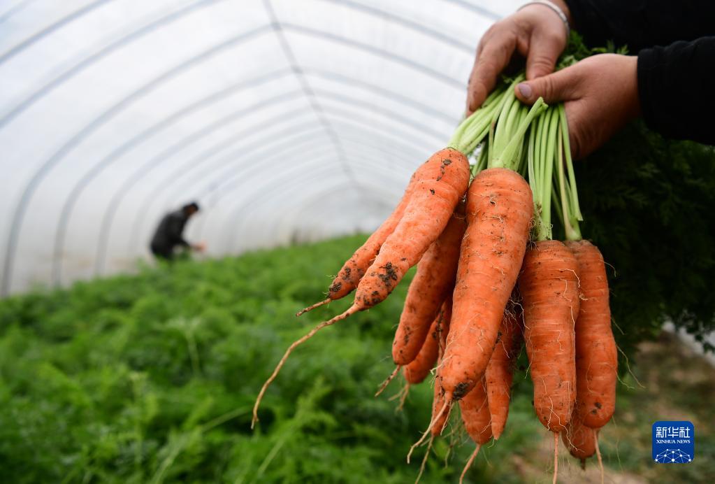 12月3日,合肥市肥西縣高店鎮五四社區一家合作社的菜農在采收蔬菜。新華社記者 劉軍喜 攝