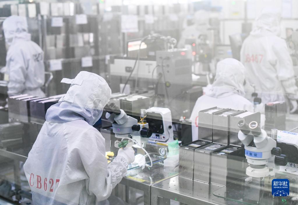 12月3日,在位于渝北區的重慶臨空智能終端產(chǎn)業(yè)園,重慶市天實(shí)精工科技有限公司工作人員在攝像頭智能化封裝車(chē)間作業(yè)。
