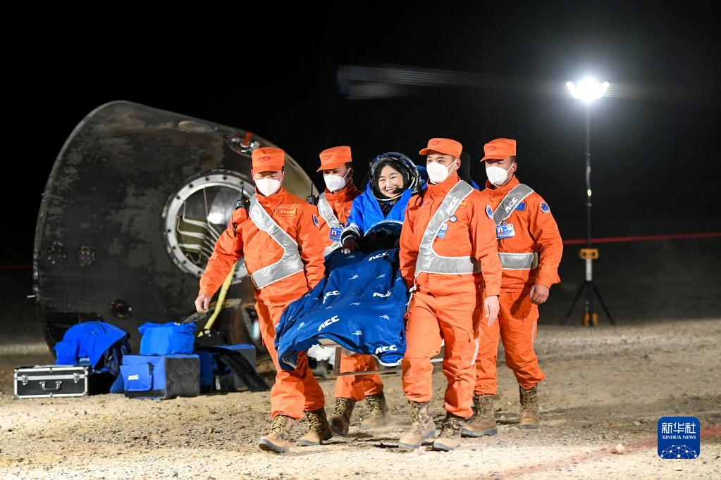 12月4日,神舟十四號載人飛船返回艙在東風(fēng)著(zhù)陸場(chǎng)成功著(zhù)陸。這是航天員劉洋安全順利出艙。新華社記者 貝赫 攝