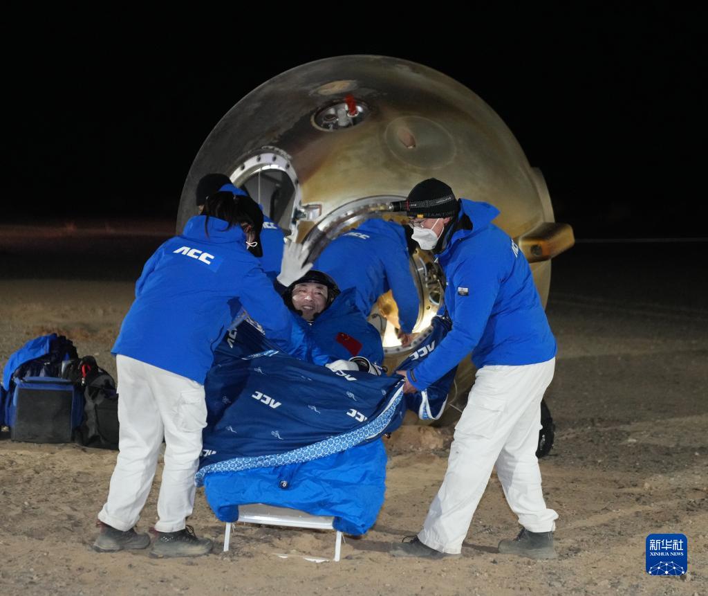 12月4日,神舟十四號載人飛船返回艙在東風(fēng)著(zhù)陸場(chǎng)成功著(zhù)陸。這是航天員蔡旭哲安全順利出艙。新華社記者 李剛 攝