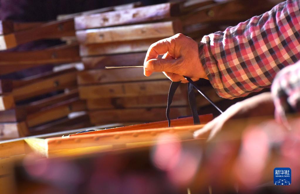 12月6日,山東省淄博市沂源縣石橋鎮馬莊村的村民在加工馬扎。