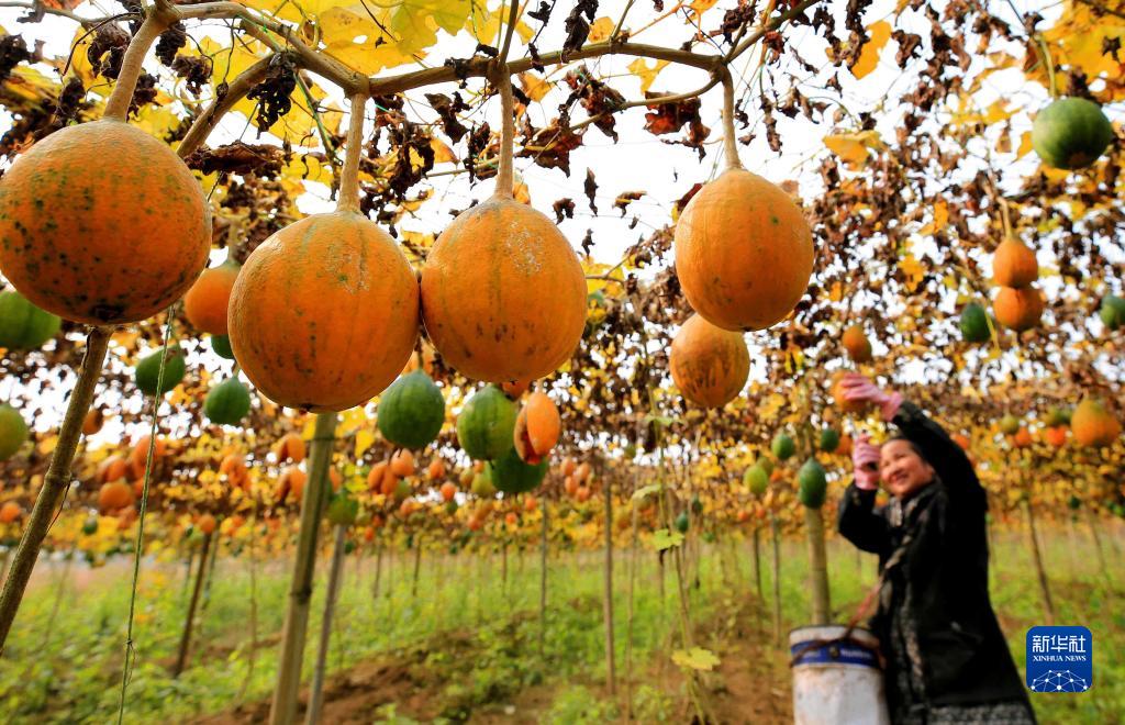 12月7日,江西省宜春市靖安縣水口鄉桃源村農民在采收吊瓜。