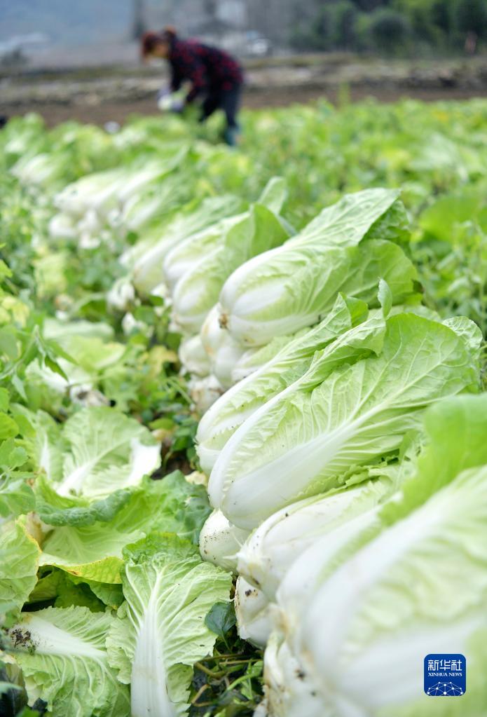 12月7日,湖北省宣恩縣曉關(guān)侗族鄉張官村蔬菜專(zhuān)業(yè)合作社社員在搶收大白菜。