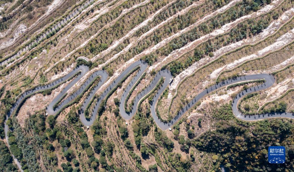這是11月28日在攀枝花蘇鐵國家級自然保護區內拍攝的礦山修復后的道路(無(wú)人機照片)。