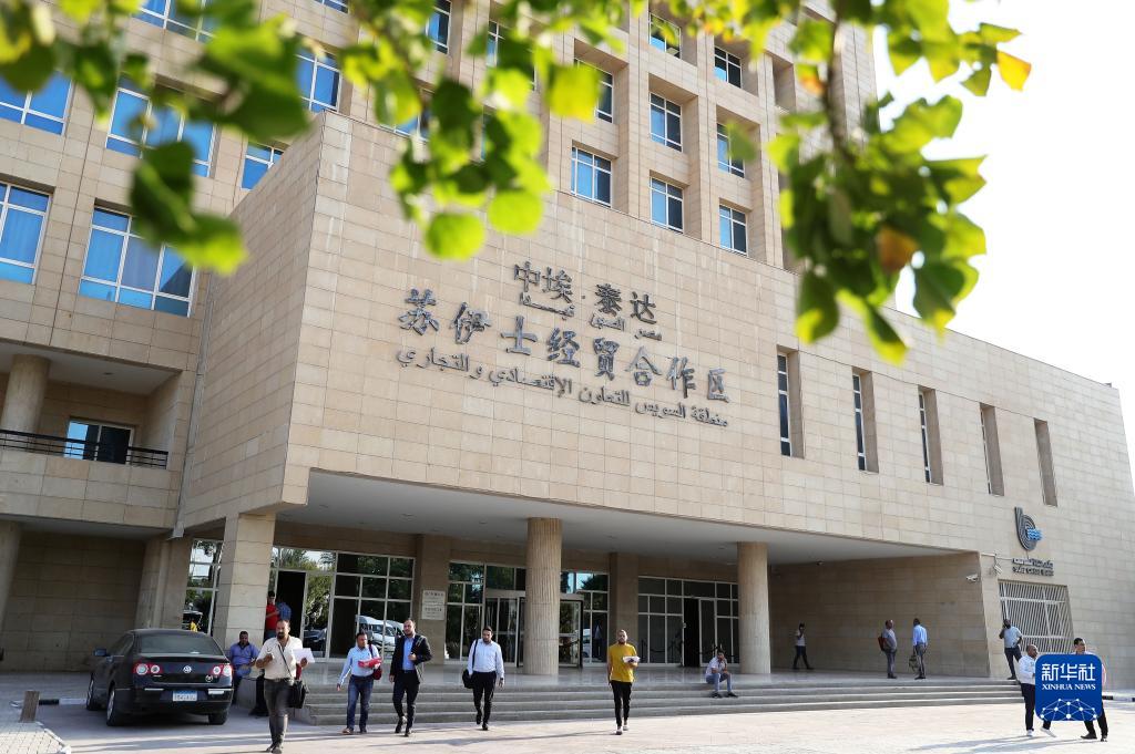 這是9月7日在埃及蘇伊士省蘇赫奈泉港拍攝的中?!ぬ┻_蘇伊士經(jīng)貿合作區(泰達合作區)綜合服務(wù)大樓。