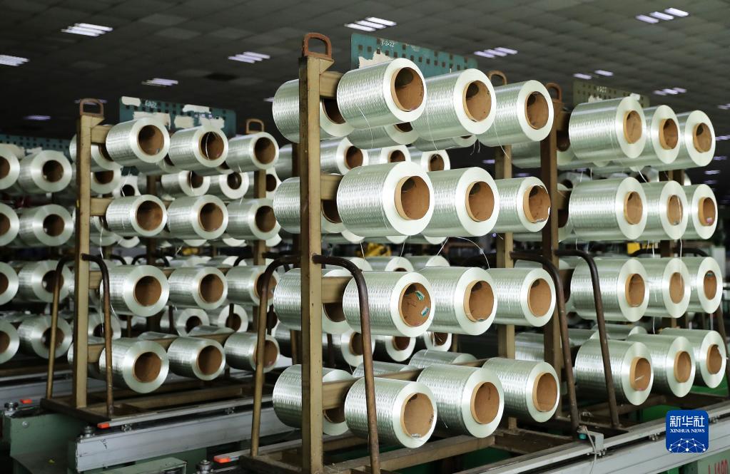 這是9月7日在埃及蘇伊士省蘇赫奈泉港拍攝的中國巨石埃及玻璃纖維股份有限公司(巨石埃及)生產(chǎn)車(chē)間。