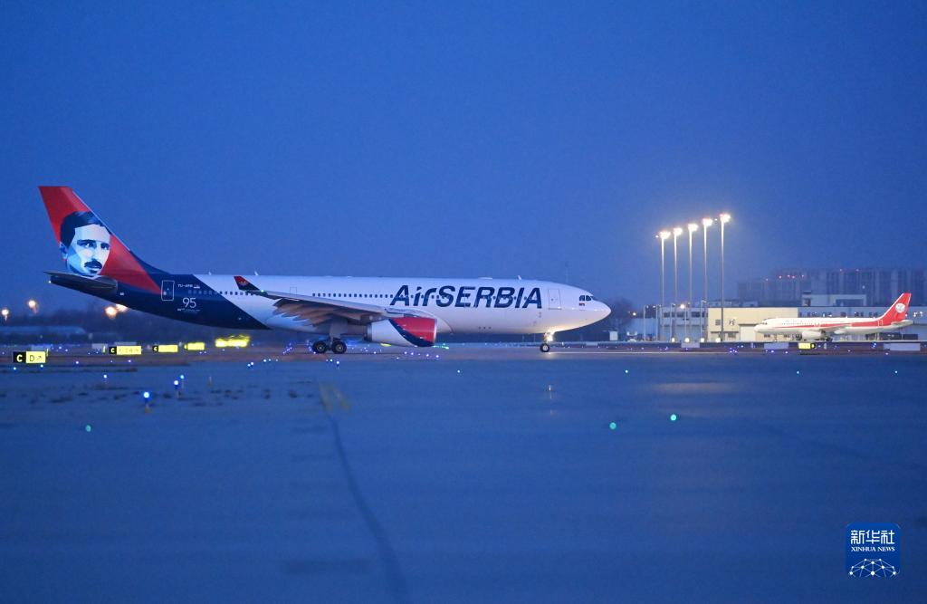 當日,搭載約170名旅客的JU702航班在天津濱海國際機場(chǎng)順利落地,標志著(zhù)“貝爾格萊德-天津”直飛航線(xiàn)正式開(kāi)通。