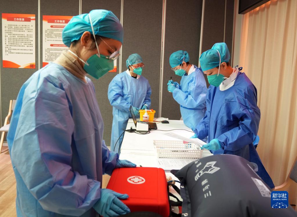 12月9日,接種小分隊的醫護人員在大同居委會(huì )為接種疫苗做準備。