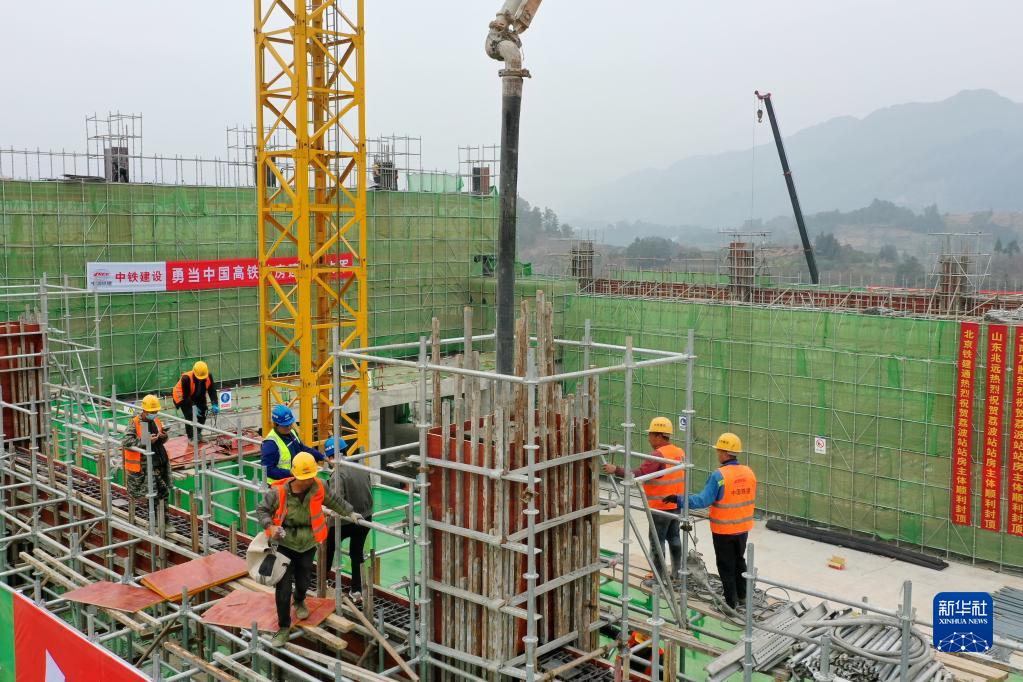 12月12日,工作人員在進(jìn)行混凝土澆筑(無(wú)人機照片)。