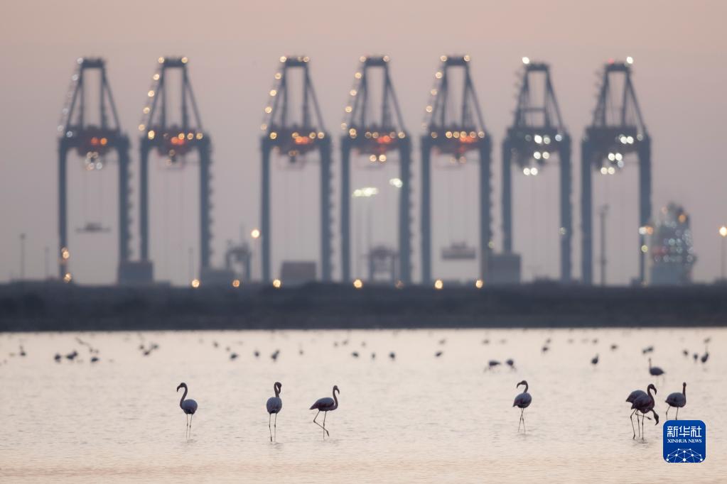 這是12月12日在埃及塞得港省福阿德港自然保護區拍攝的火烈鳥(niǎo)。