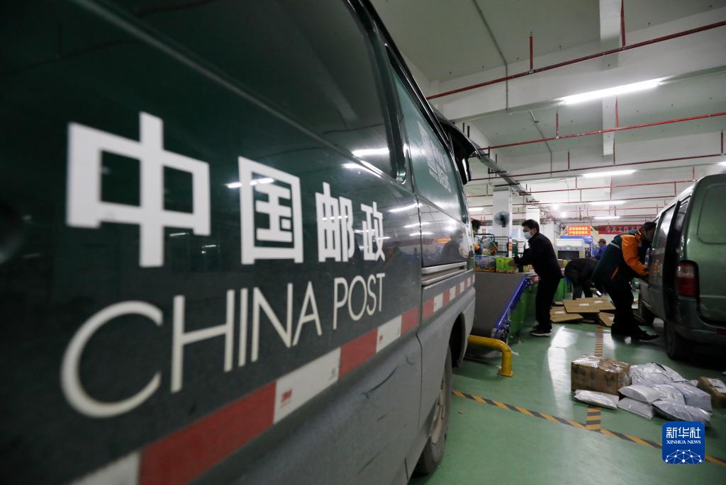 12月12日,在中國郵政集團公司湖南省資興市分公司郵件處理中心,工作人員分揀快遞包裹。