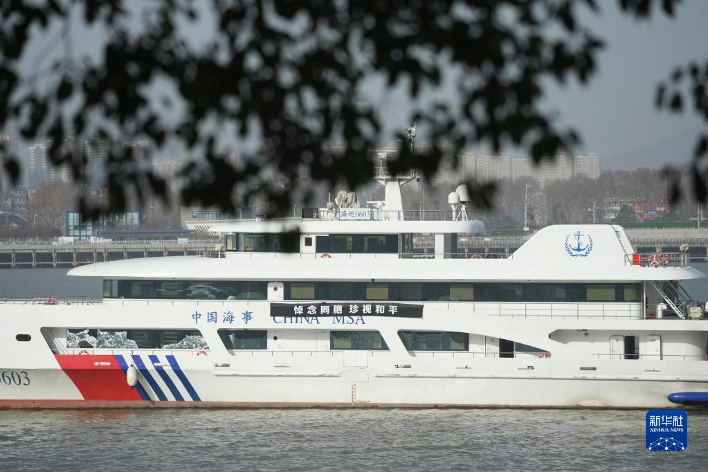 12月13日,船只在侵華日軍南京大屠殺中山碼頭遇難同胞紀念碑附近江面參加悼念活動(dòng)。