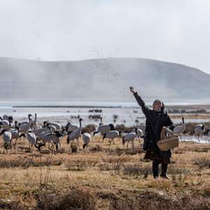 到了黑頸鶴越冬的季節,陳光會(huì )每天要監測黑頸鶴數量、投食,必要時(shí)還會(huì )進(jìn)行救治,并勸阻闖入棲息地的游客?!昂陬i鶴像是我的家人,當它們飛離時(shí)心里會(huì )感覺(jué)空落落的?!标惞鈺?huì )說(shuō)。