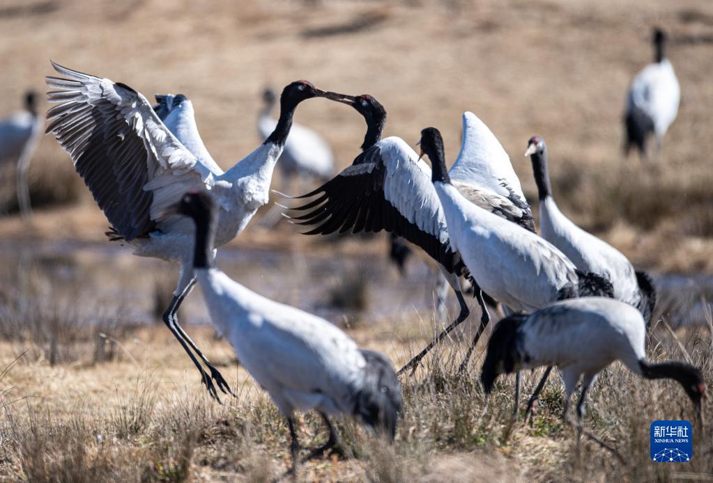 這是12月11日在云南大山包黑頸鶴國家級自然保護區內拍攝的黑頸鶴。