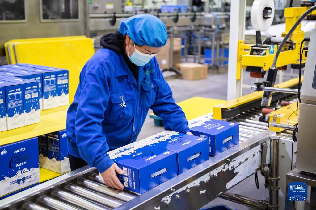 12月13日,在皇氏集團湖南優(yōu)氏乳業(yè)有限公司飲品生產(chǎn)車(chē)間,工作人員在做成品出庫前檢查。