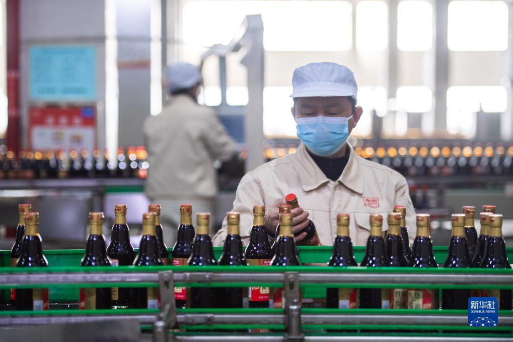 12月13日,在加加食品集團股份有限公司醬油生產(chǎn)車(chē)間,工作人員在檢查醬油品質(zhì)。