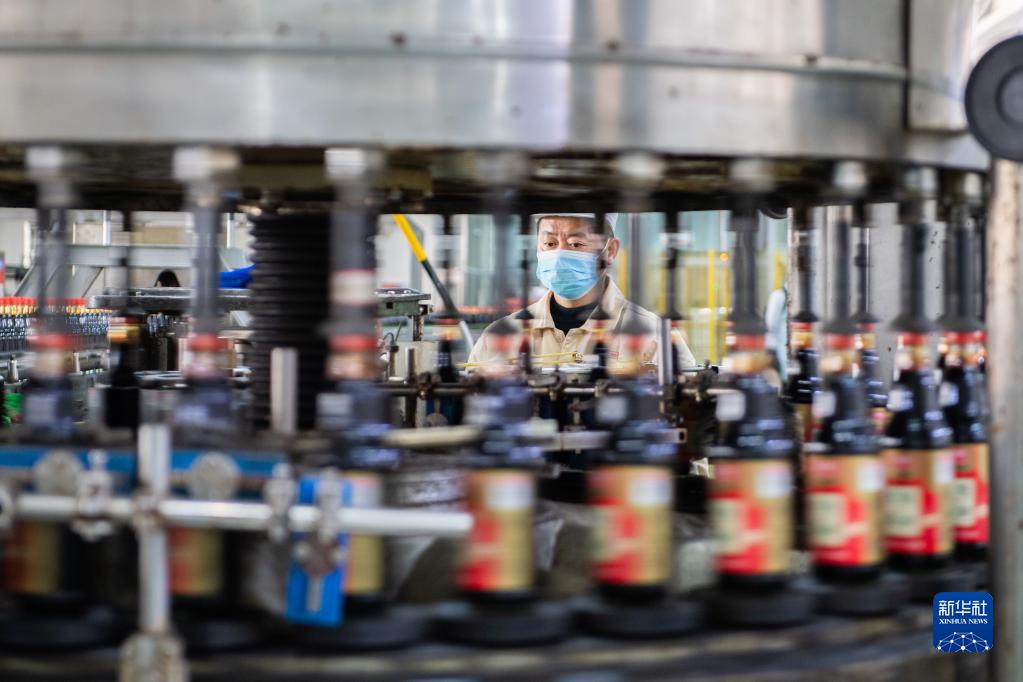 12月13日,在加加食品集團股份有限公司醬油生產(chǎn)車(chē)間,工作人員在檢查醬油品質(zhì)。