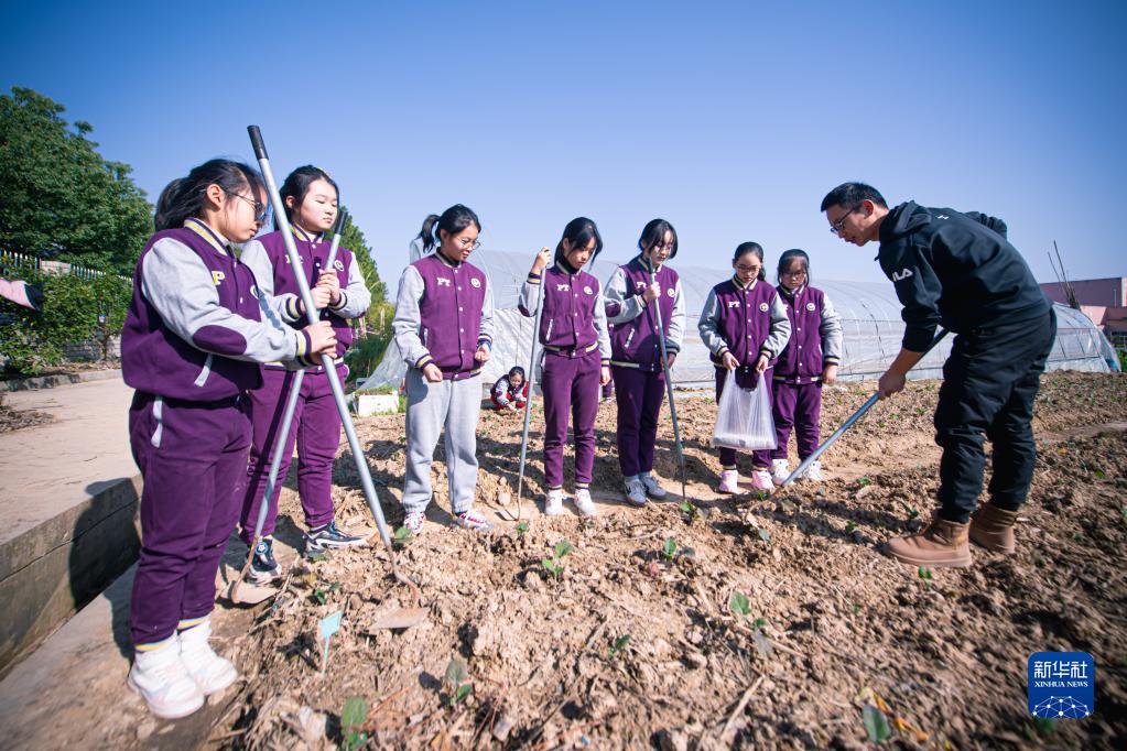 12月15日,諸暨牌頭鎮中心小學(xué)的老師在校內勞動(dòng)教育基地為學(xué)生們講解耕種技巧。