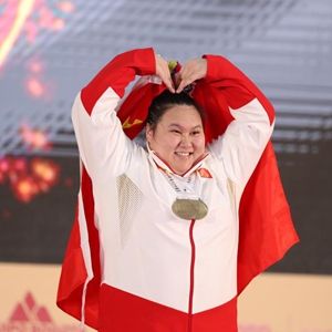 當日,在哥倫比亞波哥大舉行的2022世界舉重錦標賽女子87公斤以上級比賽中,中國選手李雯雯奪得抓舉、挺舉項目和總成績(jì)三枚金牌。