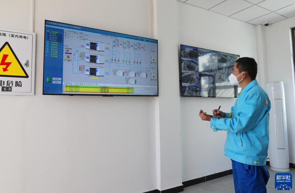 12月15日,一名工作人員在加氣站監控室內記錄設備運行情況。