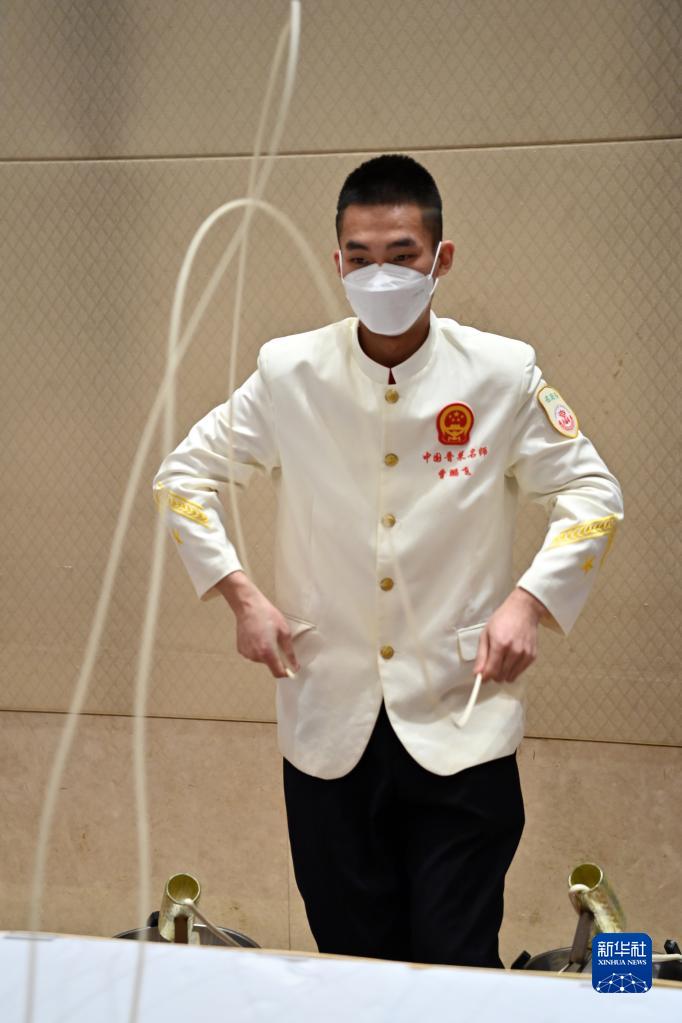 12月16日,廚師在2022中國非遺面食大會(huì )現場(chǎng)表演面食制作技藝。