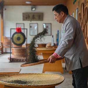 福州茉莉花茶由綠茶和茉莉花進(jìn)行拼和、窨制而成,它的制作技藝被稱(chēng)為“福州茉莉花茶窨制工藝”,是國家級非物質(zhì)文化遺產(chǎn),包含平、抖、蹚、拜、烘、窨、提七道工序。一般來(lái)說(shuō),窨的過(guò)程按照1斤茶和3斤花配比,一層茶葉一層花層層堆放、靜置,然后重復窨次,最多可窨九次。最終茉莉花把花香奉獻給茶葉,花朵消失不見(jiàn)。