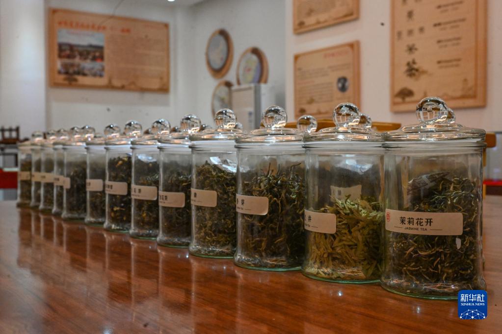 這是12月16日在福州茉莉花茶制茶工坊拍攝的茉莉花茶成品。茉莉花可與不同種類(lèi)的茶葉結合形成各式各樣的茉莉花茶。