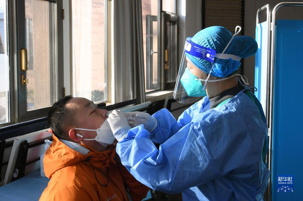 12月17日,在北京市海淀區田村路街道新冠疫苗臨時(shí)接種點(diǎn),醫護人員為市民接種鼻噴第二劑次加強針。