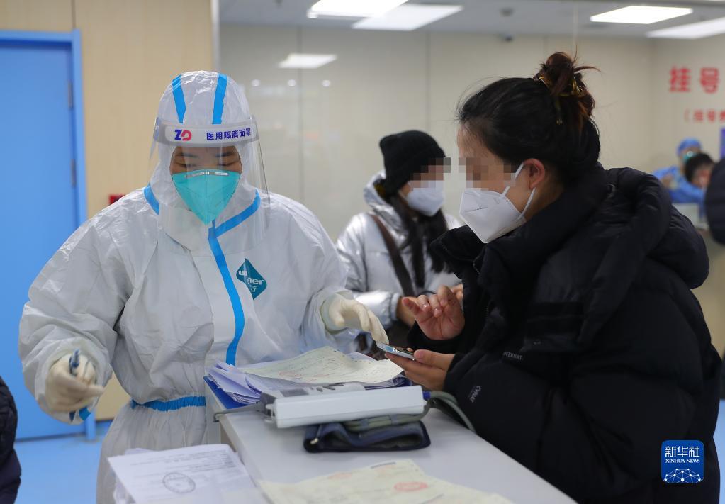 12月15日,在中國醫科大學(xué)附屬盛京醫院南湖院區發(fā)熱門(mén)診,值班醫生在詢(xún)問(wèn)病情。