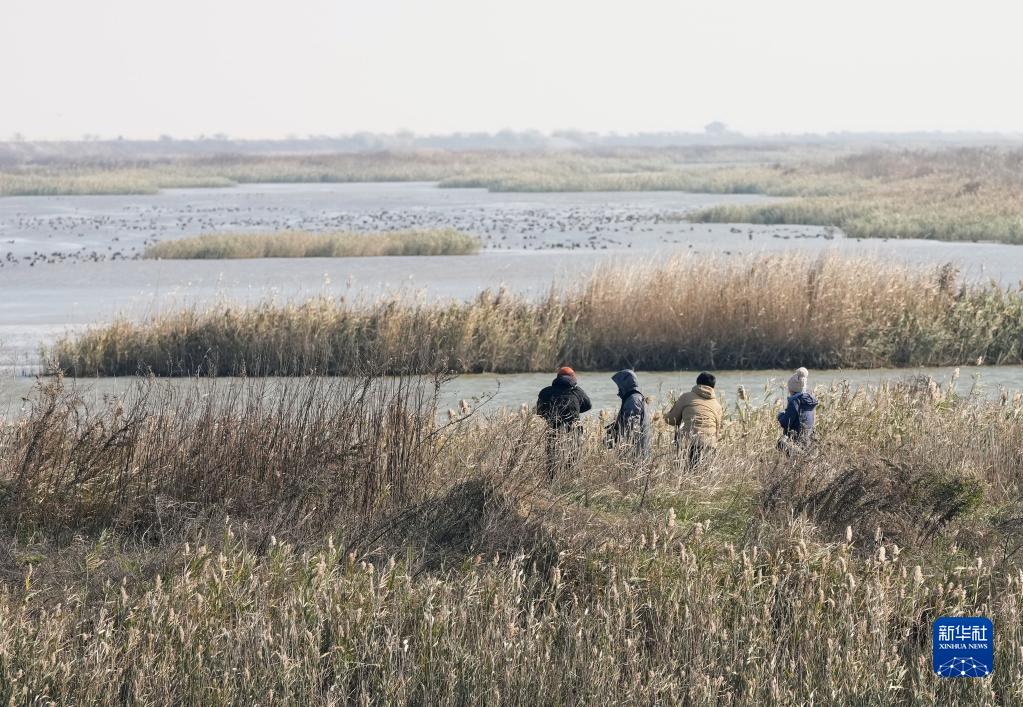 12月17日,在上海崇明東灘自然保護區,濱海社區觀(guān)鳥(niǎo)邀請賽的參賽者在觀(guān)鳥(niǎo)。