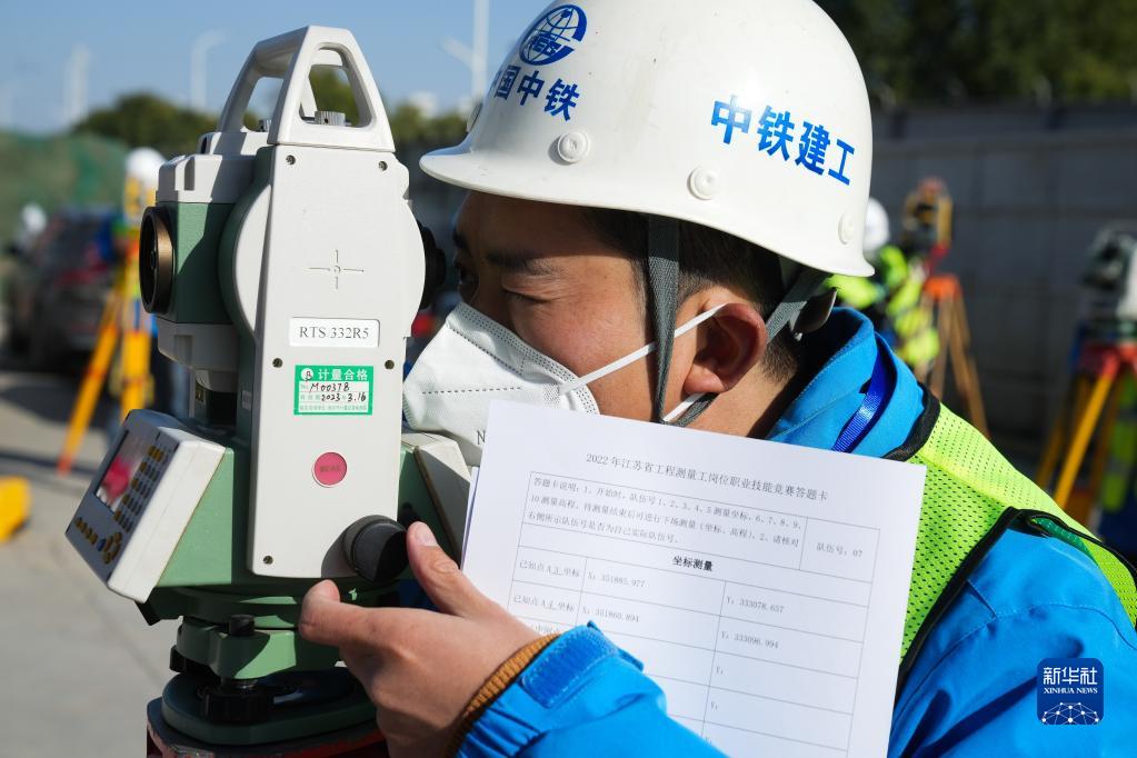 當日,2022年江蘇省工程測量工崗位職業(yè)技能競賽在中鐵建工集團南京紅山科研創(chuàng )新園項目現場(chǎng)舉行。數十名選手圍繞理論知識、實(shí)際操作展開(kāi)競賽。