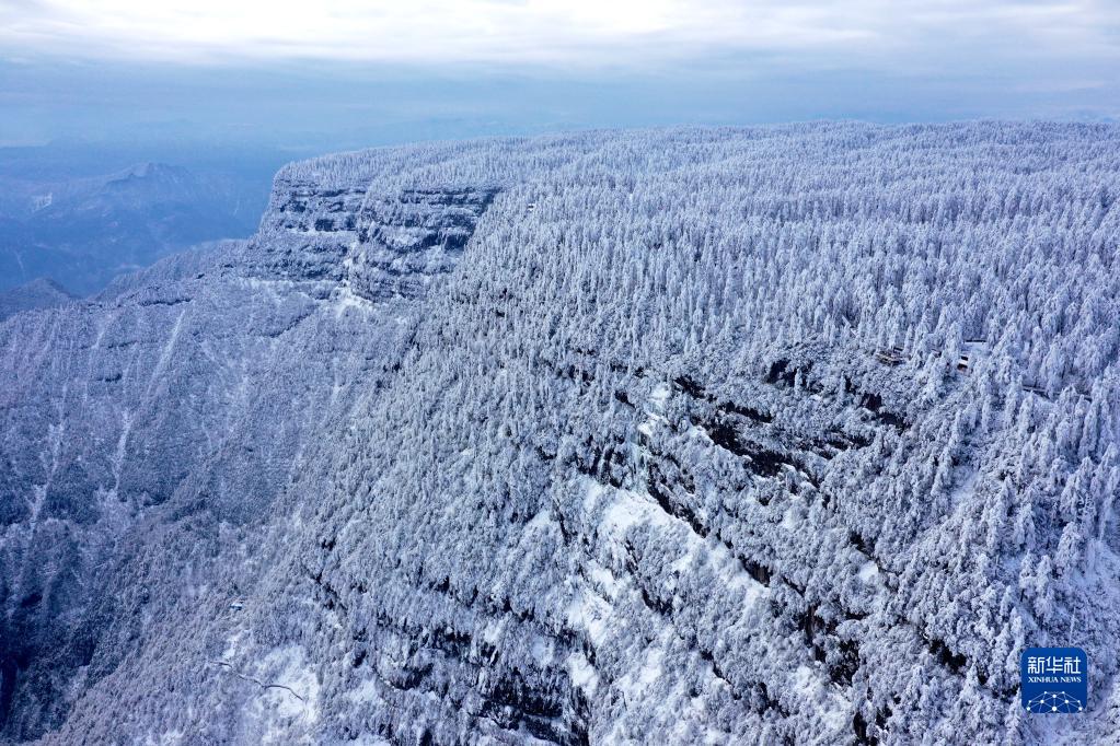 這是12月18日拍攝的瓦屋山雪景(無(wú)人機照片)。