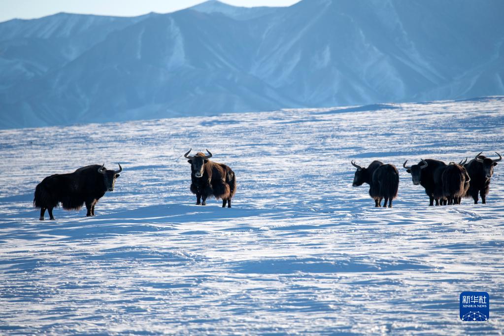 一場(chǎng)降雪過(guò)后,地處甘肅省酒泉市阿克塞哈薩克族自治縣境內的哈爾騰高原被皚皚白雪覆蓋,成群的藏野驢、野牦牛等野生動(dòng)物在高山雪地間戲雪覓食,為冬日的哈爾騰增添了不少生機與活力。
