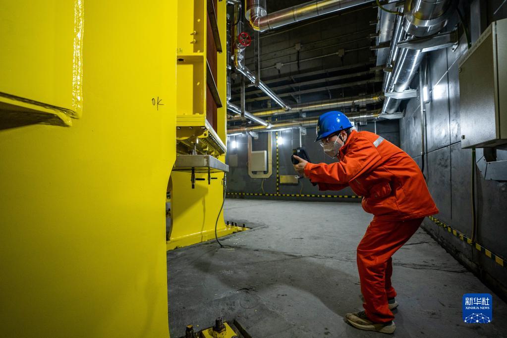 12月19日,在白鶴灘水電站右岸地下廠(chǎng)房,工作人員在檢查發(fā)電機升溫情況。