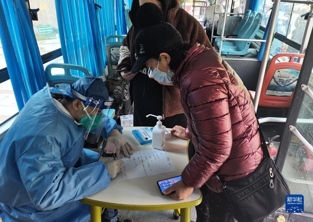 12月20日,在江寧區麒麟街道華匯康城小區,醫生在發(fā)熱流動(dòng)診療車(chē)上服務(wù)群眾。