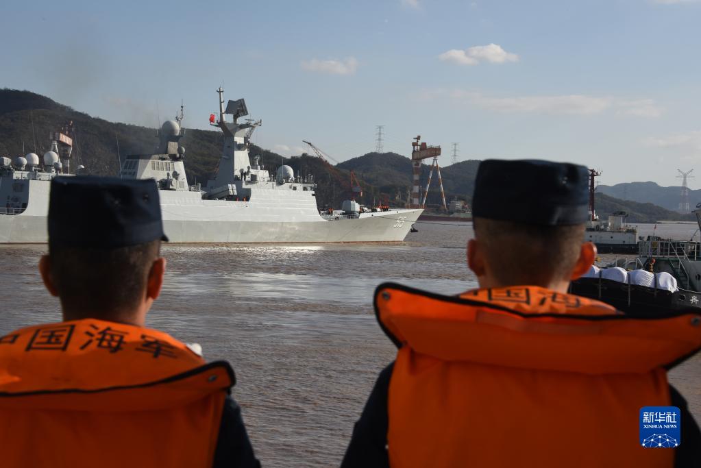 12月20日,參加中俄“海上聯(lián)合-2022”聯(lián)合軍事演習的中國海軍艦艇編隊從浙江舟山某軍港起錨。新華社記者 黎云 攝