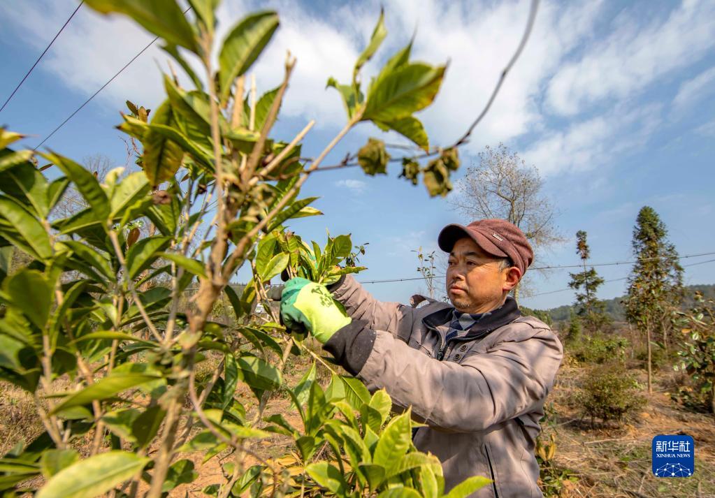 12月21日,村民在貴州省黔西市蓮城街道老鴰河社區花卉苗木基地剪枝。