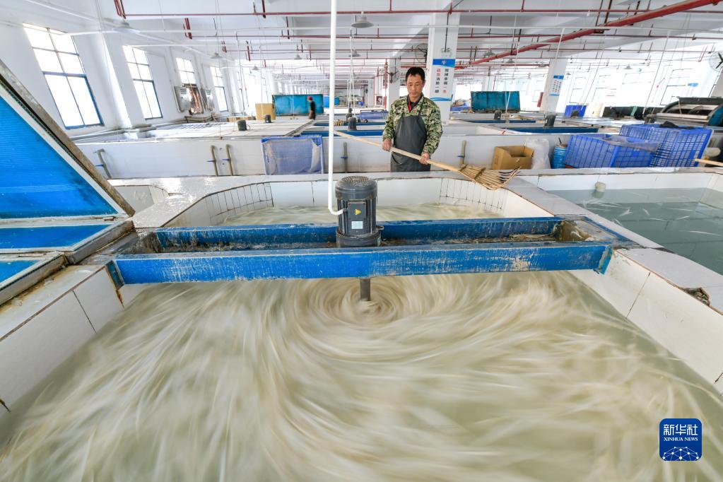 在錦屏經(jīng)濟開(kāi)發(fā)區貴州亞獅龍體育文化產(chǎn)業(yè)發(fā)展有限公司羽毛球生產(chǎn)基地,工人在清洗鵝毛(12月19日攝)。
