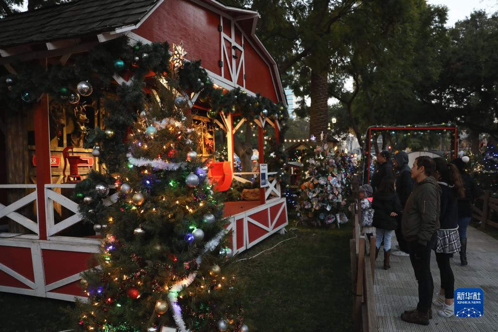 12月20日,在美國舊金山灣區圣何塞,人們觀(guān)賞圣誕主題裝飾。