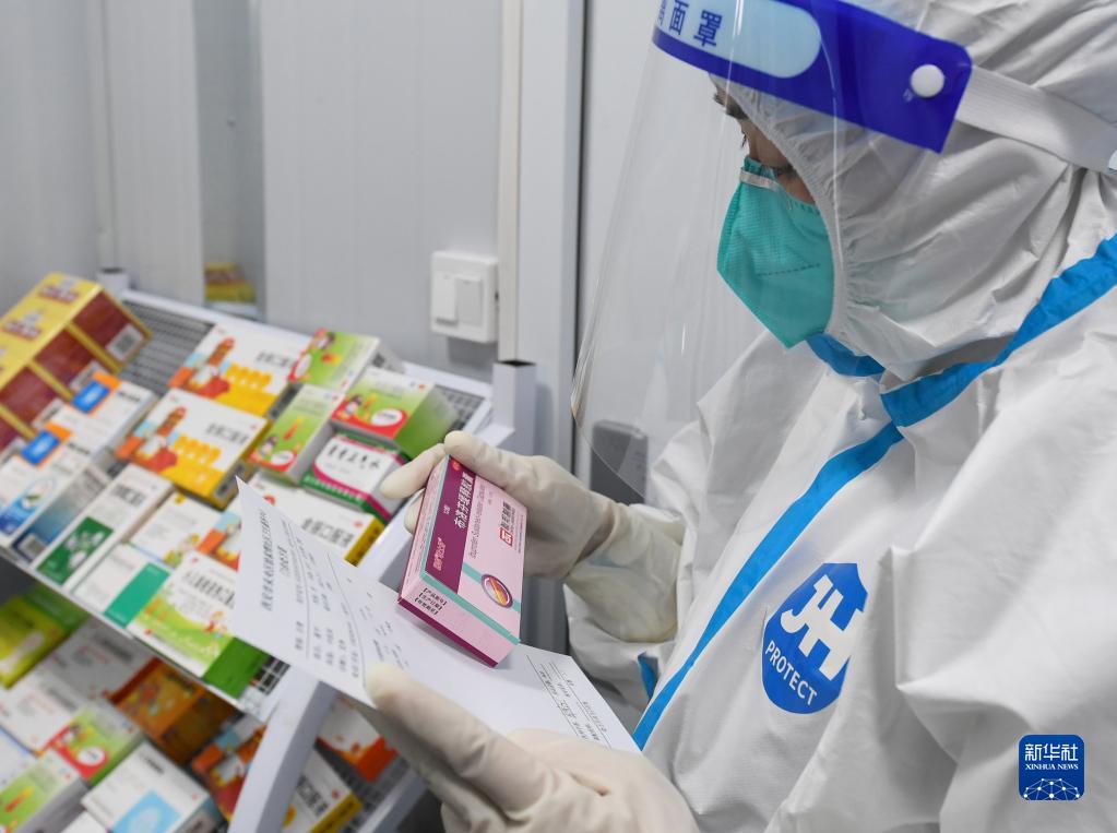 ??在陜西省西安市未央區徐家灣社區衛生服務(wù)中心的發(fā)熱診室,醫生為患者開(kāi)藥(12月20日攝)。