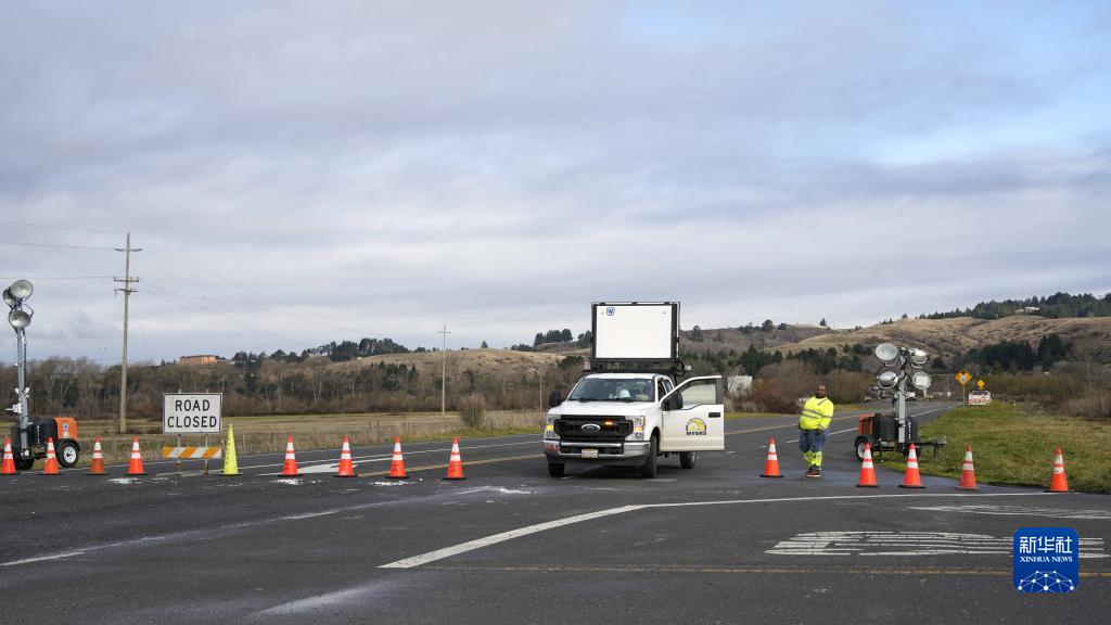 12月21日,在美國加利福尼亞州北部,通往芬代爾橋的公路因橋梁被地震損壞而關(guān)閉。