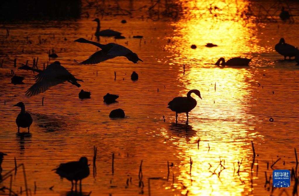 在鄱陽(yáng)湖畔的五星白鶴保護小區,成百上千只候鳥(niǎo)歡快地嬉戲覓食,享受著(zhù)鄱陽(yáng)湖畔的冬日暖陽(yáng)。鄱陽(yáng)湖今年遭遇持續干旱,為保護越冬候鳥(niǎo),愛(ài)鳥(niǎo)人士將候鳥(niǎo)常來(lái)的藕塘租下來(lái),擴建五星白鶴保護小區,周邊的稻田也只種不收,留給候鳥(niǎo)作食物……這一系列舉措保障了候鳥(niǎo)在此棲息越冬。