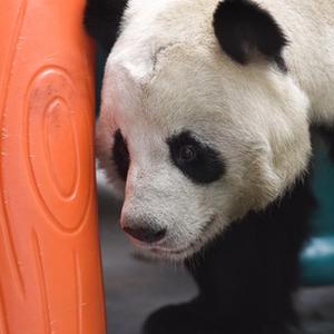 12月22日,在西寧熊貓館,大熊貓在玩耍。