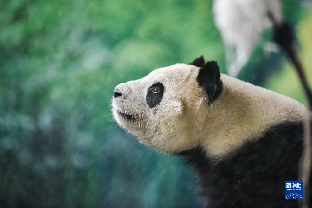 12月22日,在西寧熊貓館,大熊貓在玩耍。