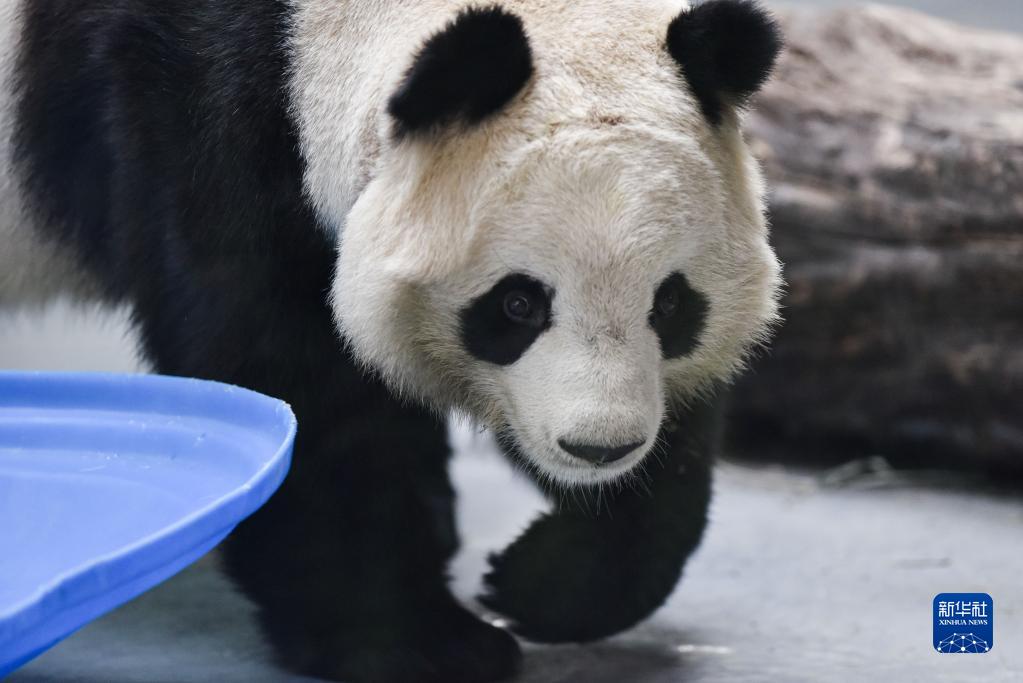 12月22日,在西寧熊貓館,大熊貓在玩耍。