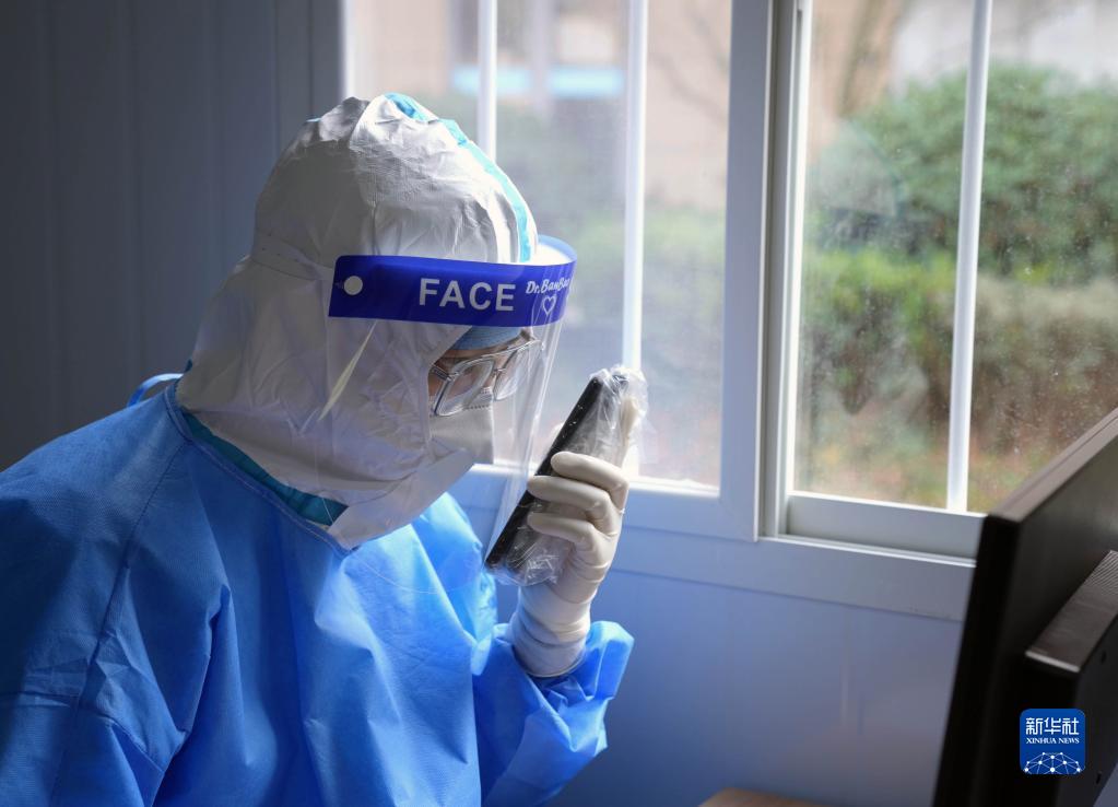 12月21日,在上海市浦錦社區衛生服務(wù)中心的發(fā)熱哨點(diǎn)診室,龍永術(shù)在看診間隙接聽(tīng)居民的咨詢(xún)電話(huà)。